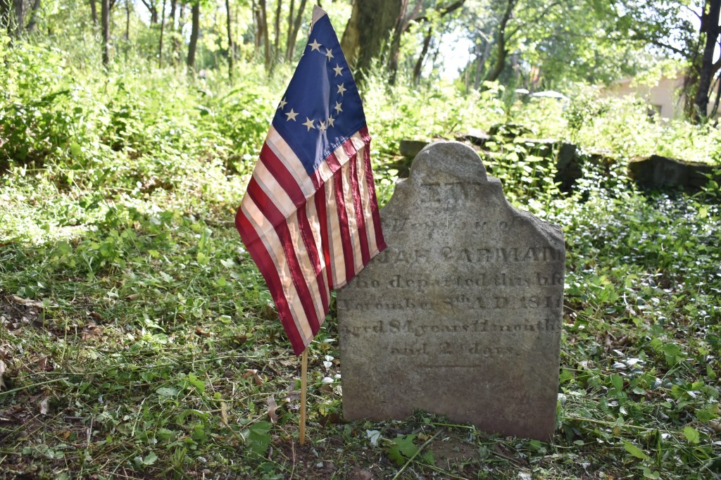 Here is a photograph of the local grave of Revolutionary War veteran Jesse Pettit in Carman Cemetery on Open Space property recently acquired by Raritan Township, photo courtesy of Raymond Simonds. The headstone of Elijah Carman is shown below.