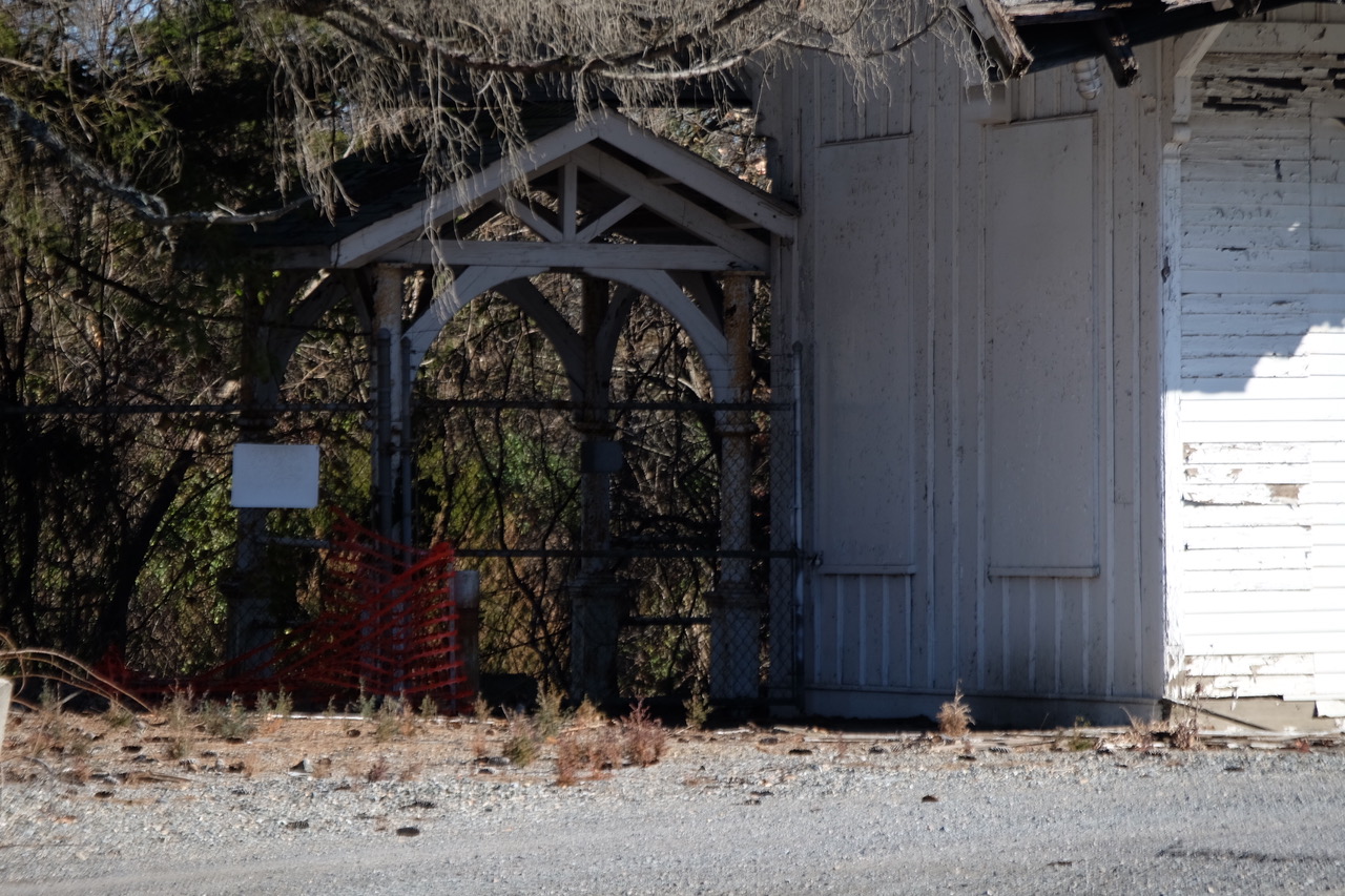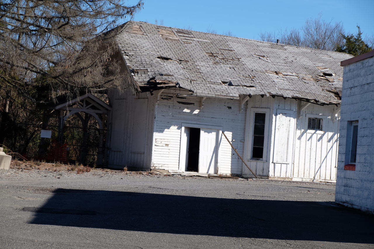 Despite the fact that the train station is listed as a contributing resource in the Raritan/Readington South Branch Historic District, the unmaintained station fell into disrepair and was demolished in March of 2023. It was a 1½-story carpenter Gothic/Stick style structure with wide overhanging bracketed eaves, clipped gables, a decorative mix of board-and-batten and clapboard siding, tall windows and symmetrically-placed projecting bay windows. Gable-roofed Stick-style and arched porticos, which sheltered walkways to the stairs that led down to the railroad tracks, remained standing adjacent to the station on both ends. Historic photographs show that stairs and platform were also once sheltered. I did not get to see the interior but a few photos were taken by a township official.